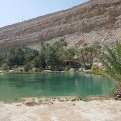 Auf dem Weg von der Wüste zum Strand brauchen wir eine Erfrischung und suchen uns dafür das Wadi Bani Khalid aus. Eine gute Entscheidung, denn das Wasser ist klar und warm und es hat ganz hinten im Czytaj więcej