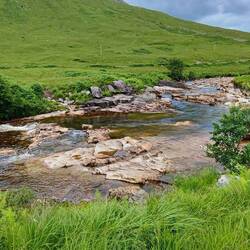 Auf dem ersten Abschnitt der Straße folgen Sie den Ufern des Flusses Etive, der an seiner Quelle im Rannoch Moor beginnt und ein beliebtes Ziel für Wildwasserkajakfahrer ist. Nachdem Sie dem Fluss etwa vier Meilen lang gefolgt sind, erreichen Sie den Etive Mor-Wasserfall in Glencoe , der nur wenige Gehminuten von der Straße entfernt eine weitere Fotogelegenheit bietet.