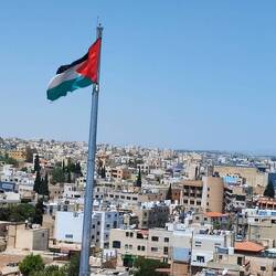 Mit knapp 50 Stundenkilometer Wind ist es ganz schön stürmisch in Amman, wo heute 35 Grad erwartet werden. Den Sturm nutzen wir und ziehen weiter.
