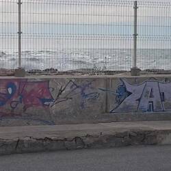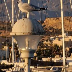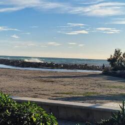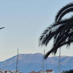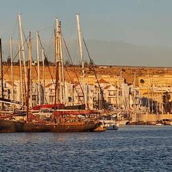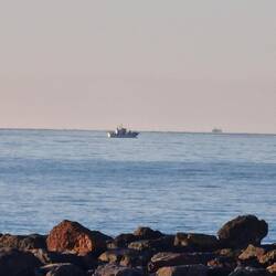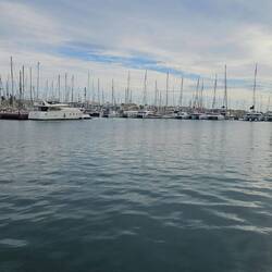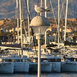 Wir stehen am Hafen, direkter Blick aufs Meer.