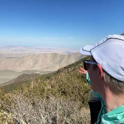 2pm - and we are off! We have a choice to walk down the road or cut through the forest. Someone told Di to take the forest for the most amazing views and she was not wrong! Wow! Omg! Wow. As we emerged out of the forest trail by a small parking lot we have views of the desert floor and mountains beyond. I need to find better words for “stunning, gorgeous, beautiful, breathtaking” they just don’t seem powerful enough for what my eyes were seeing.