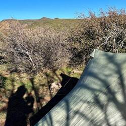 🏕️ 5.35pm - We never did find anyone else of our trail family but eventually found a campsite at 8 miles into the hike (or 17 miles for Di!). Just me and Di tonight. A bit of stealth camping…. Sssssh!