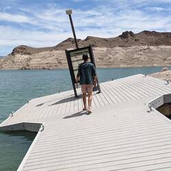 Entre Zion et Las Vegas se trouve le lac Mead. On y fait escale pour profiter d'un point d'eau et avec l'espoir de trouver une plage. Après avoir été dévié par des routes bloquées en direction du lac, on est arrivé à Echo Bay. L'endroit n'a rien de paradisiaque. Un hôtel-restaurant abandonné devait dominer la baie il y a quelques années. On a trouvé sur internet que l'établissement avait été fermé en 2010 car l'eau du lac était devenue trop basse. On remarque que plusieurs fois il y a eu des tentatives de rallonger la rampe de mise à l'eau mais le niveau continue à baisser. On marche donc au fond de la cuvette qui s'est asséchée et qui laisse place à de la vase craquelée. En se rapprochant de l'eau, on s'enfonce rapidement. On rejoint ensuite une autre rampe et on s'y pose pour lire, méditer, se jeter à l'eau pour Julien, confectionner une canne à pêche pour Grégoire. Avant la nuit, on reprend la route, pour se rapprocher un peu plus de Vegas qui nous attend le lendemain. On s'arrête entre le lac et les montagnes sous un beau coucher de soleil. Malheureusement (ou évidemment), pas de poisson ce soir-là pour le dîner.Read more