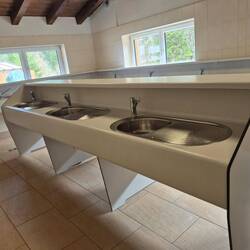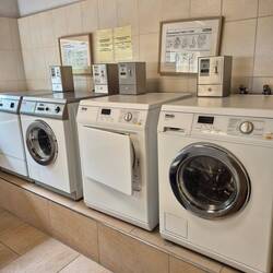 Stellplatz und Parkplatz. Dusche, Toilette und V+E. 20 €. Dusche 3€ für 3 min., Waschmaschine bis 5€. Keine Trockner.