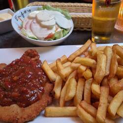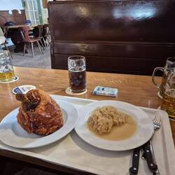 Essen war super lecker. Dort gibt es auch Sauerbraten und manchmal Muscheln.
