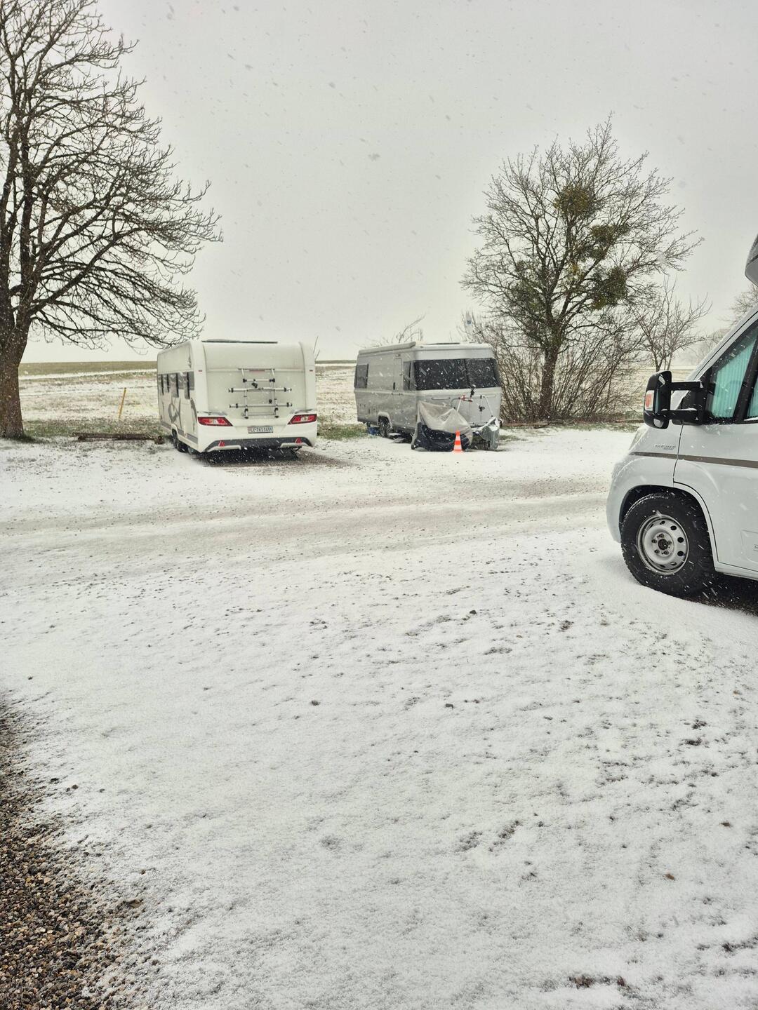 Gestern angekommen. Schei... Wetter. Kalt, Regen Schnee, Graupel und Gewitter . Alles was man nicht will.