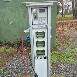Stehen am Schwimmbad. Platz kostet 10€ die Nacht. Strom ,50€ pro KW. Wasser kostenlos. Für 1 Nacht ok.