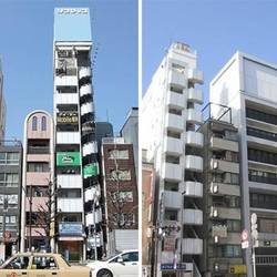The building footprint of a lot of buildings is still the same Edo-era shopfront, which results in some really narrow high rises. I poached these pics from the internets, but they are a pretty much what we saw all over the place - it's all sorts of buildings too, not just the fancy ones in some glossy architecture magazine. Though I'm sure you could make a book out of Tokyo's narrow buildings alone.