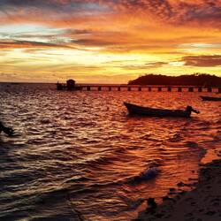 Pünktlich zum Abendessen ging die Sonne um 18.30Uhr unter und tauchte den Himmel in wunderschöne Farben. Es gab ein traditionelles Essen: Fisch, Hähnchen, Spinat in 🥥-milch, Taro, Süßkartoffel, Salat und Melone - das war super lecker.