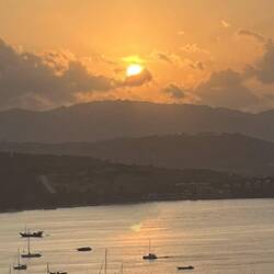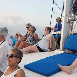 The whole Wheel & Anchor gang went over the "The Living Room" for dinner tonight! It was a lovely meal! Of note, however, a couple of folks in our group ordered the lobster. The soft-shelled lobster from these warm waters have no large claws like we are accustomed to in North America. And, it is served very differently. So, if you are expecting it to be like back home ... you might be disappointed!
