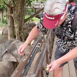 After breakfast, we walked over to pick up our laundry. The old boy has made a friend in the parking lot attendant. He was quick to head onto the street to halt traffic and make sure we crossed safely. We continue to be impressed by how kind and respectful the Thai people are. I think I mentioned that even the vendors on the beach do not pressure nor harass. They simply smile and ask and do not persist past hearing "no".