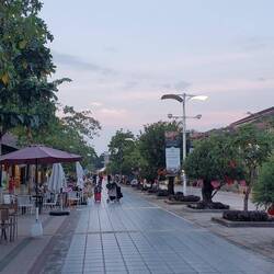 After that, we showered up and walked down to the night market. It was crowded ... and ... filled with different kinds of foods! We didn't want to eat there though because we heard that there was going to be live music at our restaurant.