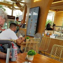 The old boy ordered a lovely iced coffee ... and ... I remembered I had packed a long sleeve dri-light shirt that I was going to use if we went somewhere (e.g Temples) that required my shoulders be covered! It's also SPF50, so I decided to wear it in the pool! It worked great! I think it will be perfect for walks on the beach as well!