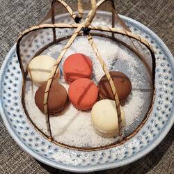 The dessert was a wee little chocolate looking parfait. I was disappointed to see that mine was different ... but then ... I was grateful. They made me a special one because the chocolate had avocado in it!! Who would have suspected that??? And, my mango version was very refreshing indeed!