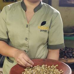 In doing so, we experienced a "first"! We had seen these hairy eyeball fruits at markets, but had never tasted one before. If it hadn't been cut in half, I might not have taken one because I wouldn't be sure how to approach it! 😅 Its called "Rambutan" and is absolutely delicious! The taste and texture remind me of a plump green grape!