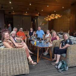 We had to cut our Bridge game short in order to get ready to join all the others at 'The Green Bird' for cocktails. Everyone except two of our group gathered together. It was wonderful to be seated near some of the other people in our group that we had not had as much opportunity to chat with before tonight.