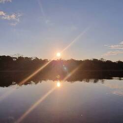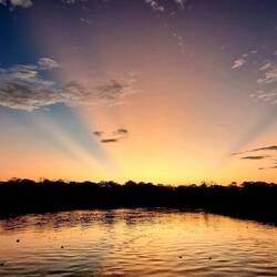 Nach einem kurzen Nickerchen geht es schon wieder los. Wir fahren über einen Nebenfluss in einen abgetrennten Mäander. Die Sonne legt einen spektakulären Abgang hin. Wir suchen Kaimane. DerRead more