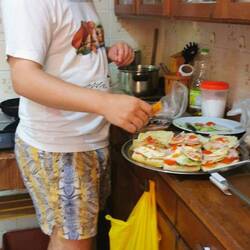 Wir fahren einen Nebenarm hinauf. Dort steigen wir aufs Kajak um... Anschließend gibt es Kochkurs und Cocktailstunde.