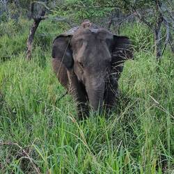 Nur 6 Prozent der Elefanten in Sri Lanka bekommen Stoßzähne. Als wir gerade auf Pirschfahrt sind, stürmt ein junger Bulle mit großen Stoßzähnen auf uns zu. Der Fahrer erkennt die Gefahr. KeineRead more