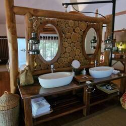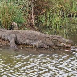 Wieder auf Safari. Die Landschaft ist atemberaubend. Snack gibt's an Bord. Aussteigen ist aus Sicherheitsgründen strikt verboten. Abends dann Sundowner am Strand. Noch ein Bad unter den Sternen.