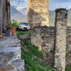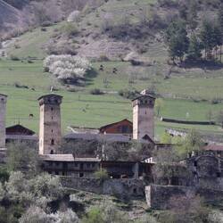Wir durchfahren Mestia auf der Suche nach einem Stellplatz und ich staune über die sehr herausgeputzten, modernen Häuser im alpinen Stil. Es gibt sogar einen kleinen Flughafen. Dabei ist die RegionLeia mais