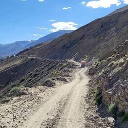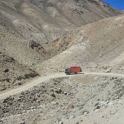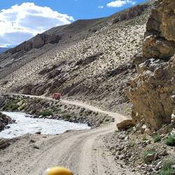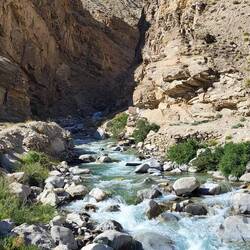Von der Piste aus dem Nationalpark kommend, biegen wir kurz auf die M 41 ab, um dann gleich wieder auf die Piste Richtung Pass Khargush Pass abzubiegen. Ganz kurz nur dürfen wir uns über die schöne asphaltierte M41 freuen, denn die Piste zum Pass ist wieder mal extrem schlecht und Waschbrett pur. Zum Ausgleich staunen wir über karge Berglandschaften durch die sich grün gesäumte Gebirgsbäche schlängeln.