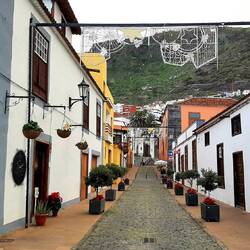 Kopfsteingepflasterte, von historischen Häusern gesäumte Gassen münden in eine Plaza mit Klöstern,Kirchen und alten Lorbeerbäumen. Gleich dahinter schnellen die Felswände fast 1000 Meter empor.