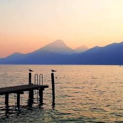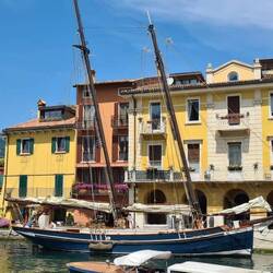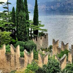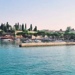 Letzter Tag - In Garda gebe ich die Vespa ab. Noch ein bisschen Zeit zum Strandeln und Baden. Dann mit der Fähre hinunter nach Peschiera del Garda.