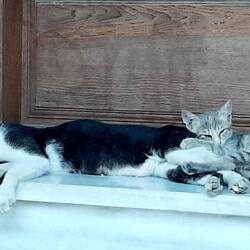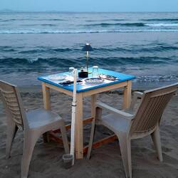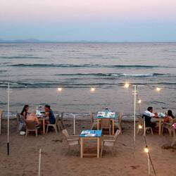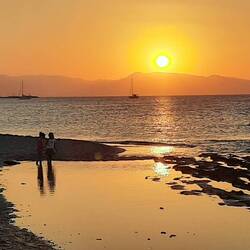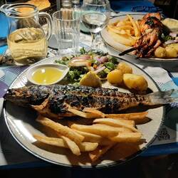 Meer begrüßt - griechisches Bier in der Strandbar verkostet - 20 Uhr die kleine Taverne sperrt auf - die Katzen warten schon - wir auch!