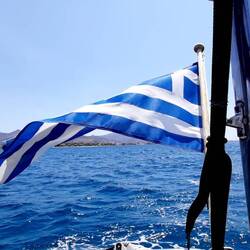 Der Meltemi ist ein launischer Wind! Zuerst zu viel - dann zu wenig. Unsere Fahrt in den Abend war leider nur noch unter Motor möglich. Dafür liegt das Schiff jetzt in einer sehr idyllischen Bucht,Read more