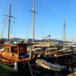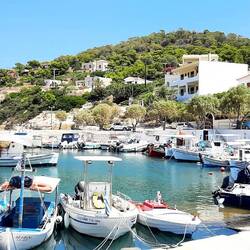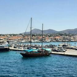 Ein beliebter Segelhafen, den wir auf unserem Törn windbedingt ausgelassen haben. Ein paar Tavernen, bunte Fischerboote und jede Menge Hafenkino zum Abendessen. :-)