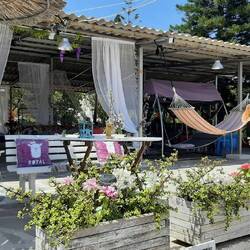 Wir genießen die Beschaulichkeit in Garten der Anatoli Bar. Malen, Wasserpfeife rauchen, Hängematte, Schnorcheln.....