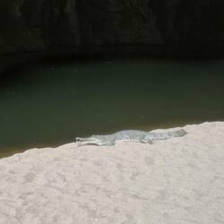 Heute stand der Tunnel Creek auf dem Programm, doch davor hieß es erstmal über 200km Off-road-Piste, was für unseren gebrauchten Ersatzreifen, den wir bei einem Ellenbrae Roadhouse gekauft hatten,Baca lagi