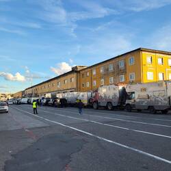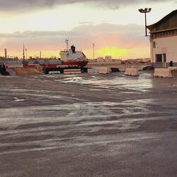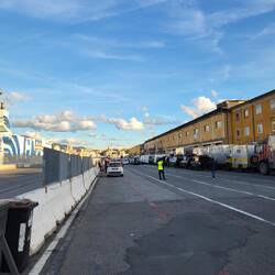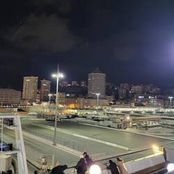 Ab durch die Berge nach Genua und im Hafen auf die Fähre warten. Nach und nach füllt es sich.