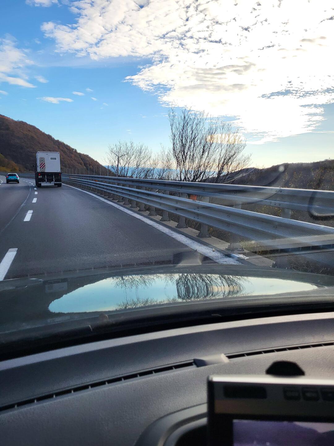 Heute ging es nur weiter zum Treffpunkt mit der Gruppe in Aqui Terme. Unterwegs kommt die Meldung, dass die Fähre wegen schlechten Wetters verspätet ist. Ich hab gerade ein deja vu.....
