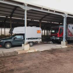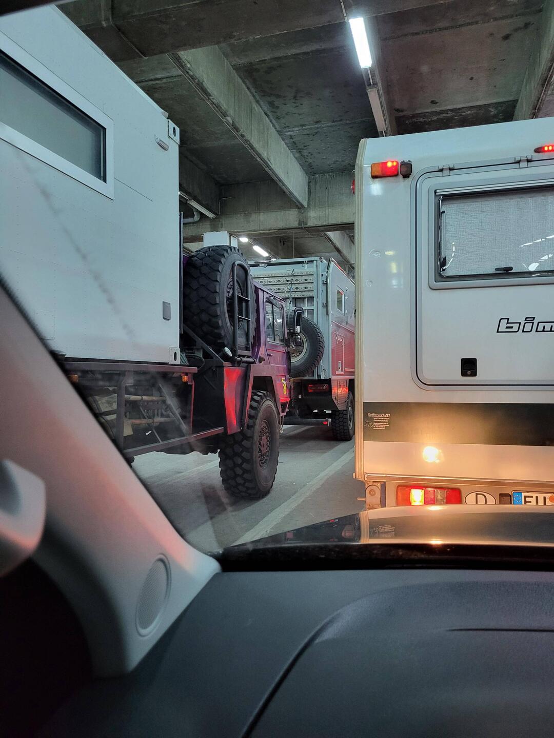 Nachdem einer der Mitreisenden seinen Daily an Olegs Heckträger aerodynamisch optimiert hat,geht es heute morgen als erstes darum die Haube zu sichern. Der Schalter der Haubenanzeige wird McGyverRead more