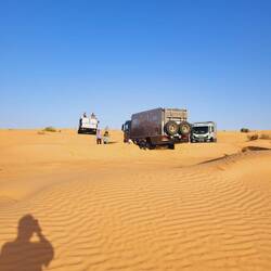 Heute verlegen wir vom Fesh-Fesh Spielplatz nach Camp Zmela. Dazu geht es erst wieder durch die Dünen beim Tembaine und Camp Mars. Souverän meistern die Teilnehmer die Dünen und nach einigenRead more