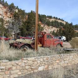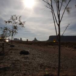 Oljato, am Rande des Monument Valley gelegen bietet einen Stellplatz mit gigantischer Aussicht direkt auf die Berge bei Sonnenaufgang. Der Hund gehört zum Platz und kümmert sich um den check in derRead more