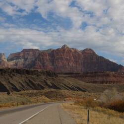 Auf dem Weg ins Monument Valley geht es durch den Zion National Park. Die Berge leuchten in allen Farben und wirken majestätisch.