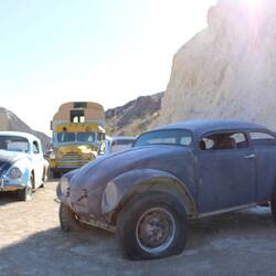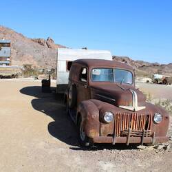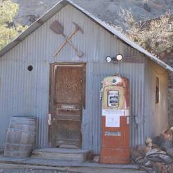 Durch Zufall komme ich durch die Nelson Ghost Town in Nevada und platze mitten in Filmaufnahmen hinein. Ein Areal auf dem viel skurriles zusammengetragen wurde.