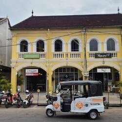 Per Grab den Fahrer mit Tuk Tuk bestellt.