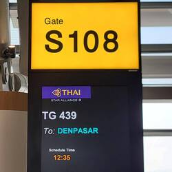 Heute morgen um 6 Uhr von Cowboy abgeholt und zum Flughafen gebracht. Jetzt geht es erstmal wieder zurück nach Bangkok. Von dort aus wird es dann gegen Mittag nach den Denpasar gehen .