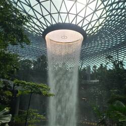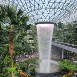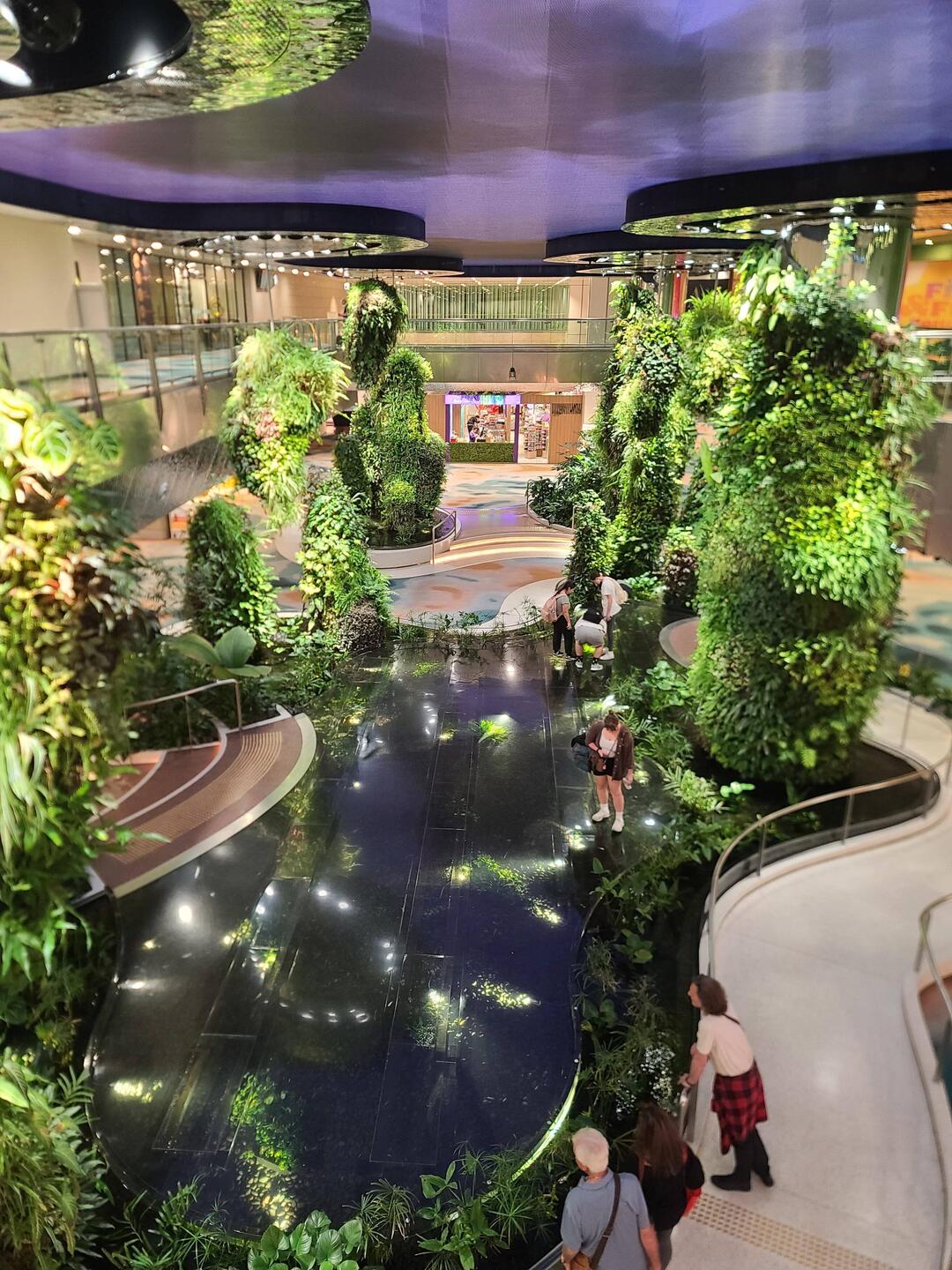 Das zweite Haus war sogar noch beeindruckender. In der Mitte war ein künstlicher Wasserfall einer der höchsten der Welt indoor. Der am Flughafen ist aber noch höher angeblich.Baca lagi