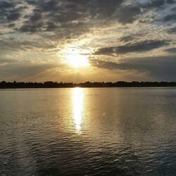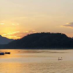 Ein wirklich schöner Ort. Die Sonne geht langsam hinter den Bergen unter....! Die letzten Boote schippern gemächlich dahin... sehr romantisch.