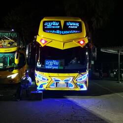 Für 150 .000 Kip nach Vientiane. Die Busse sind sehr farbenfrohe und beleuchtet....🎄🎄🎄🤪🤪🙈😵