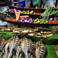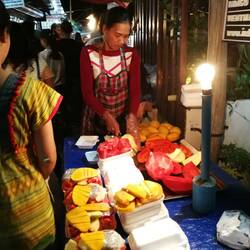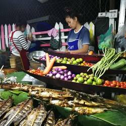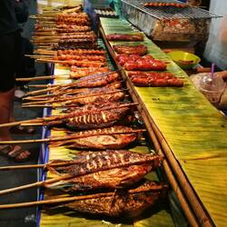 Es gibt'eine Straße hier in Luang Prabang....nennt sich Street Food Market....! Es gibt dort unzählige Garküchen und Stände mit versch. asiatische Köstlichkeiten. Man muss nur etwas mutig seinOkumaya devam et