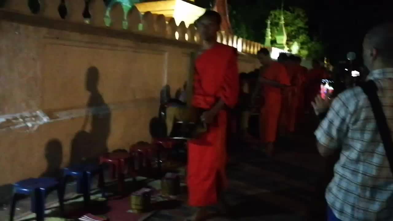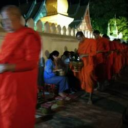 Jeden Morgen laufen die Mönche die Straße entlang und erhalten von den Einheimischen Almosen ( Essen )