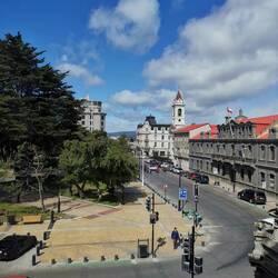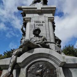 Tag eins in Punta Arenas. Die südlicheste Großstadt der Welt. Plaza de Aramas. Gleich schlechte Nachrichten am Morgen. Es gibt keine Möglichkeit ein Auto zu bekommen. Aufgrund der Verspätung istLeggi altro