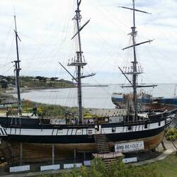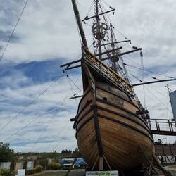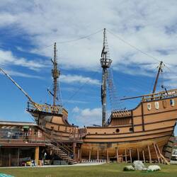 Die Fahrt geht los und zunächst machen wir noch kurzen Halt am Schiffsmuseum. Hier stehen die Replikate der Victoria, das Schiff von Magellan mit dem er die Passage entdeckt hat. Und dasLeggi altro