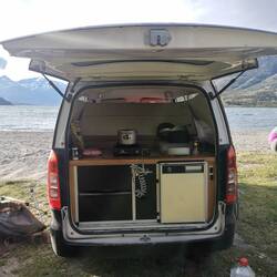 1. Übernachtung im Camper . Wir übernachten heute das erste Mal im Camper am Laguna Sofia. Ein sehr schöner See mit Bergpanorama im Hintergrund. Die Tagestouristen sind bald weg und es wirdLeggi altro